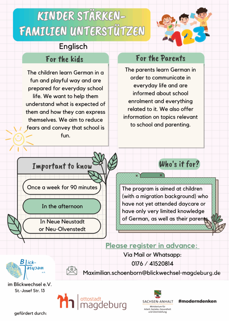 Hier findet ihr die Informationen zum Projekt „Kinder stärken-Familien unterstützen“ auf Englisch